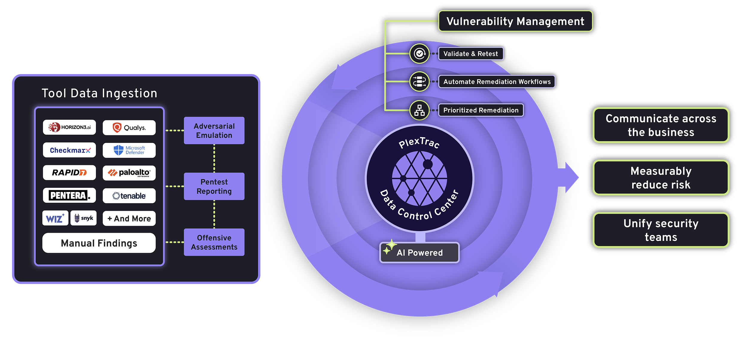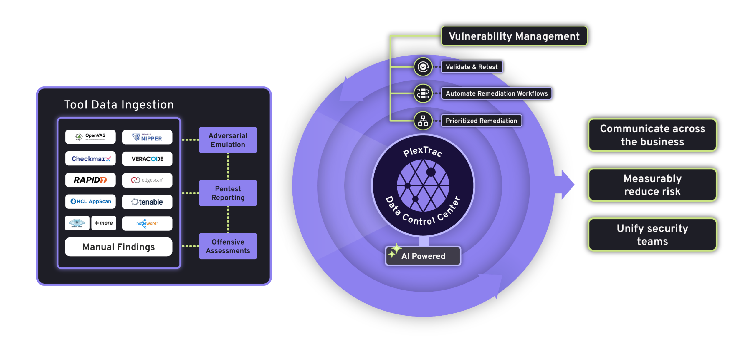 PlexTrac aggregates data from your existing security tools. It provides one central location for triaging security vulnerabilities, prioritizing the most critical issues, and tracking remediation.